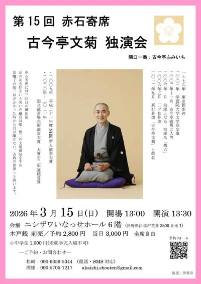 落語会|第15回 赤石寄席 出演:古今亭文菊